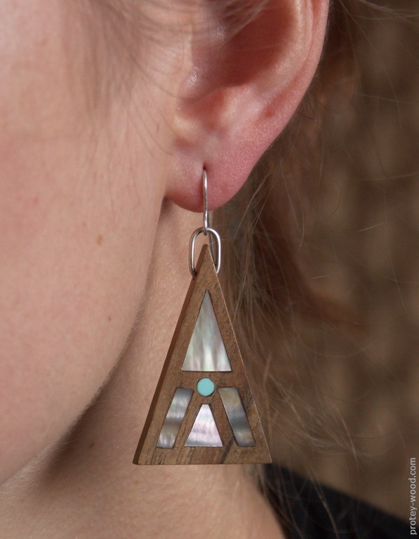 Основа — орех. Инкрустация — перламутр, натуральная бирюза. Подвес — серебро. Покрытие — пчелиный воск.