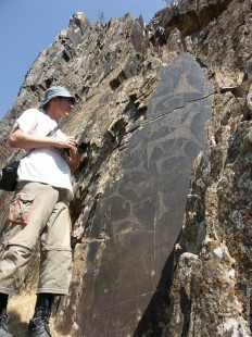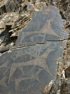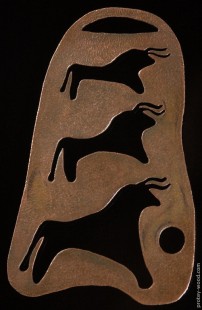 Репродукция фрагмента наскального рисунка из галереи урочища Сармиш (Узбекистан). Оксидированная медь.