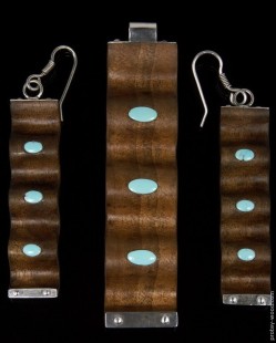 Орех. Натуральная тянь-шаньская бирюза. Серебро.