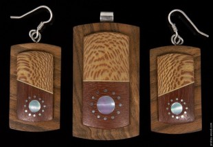 Основа – орех. Накладки – платан, масарандуба, шпон дуба. Инкрустация – перламутр, серебро. Подвес и швензы – серебро.