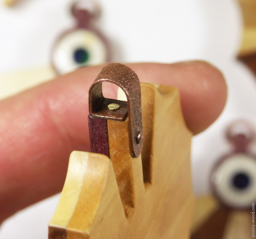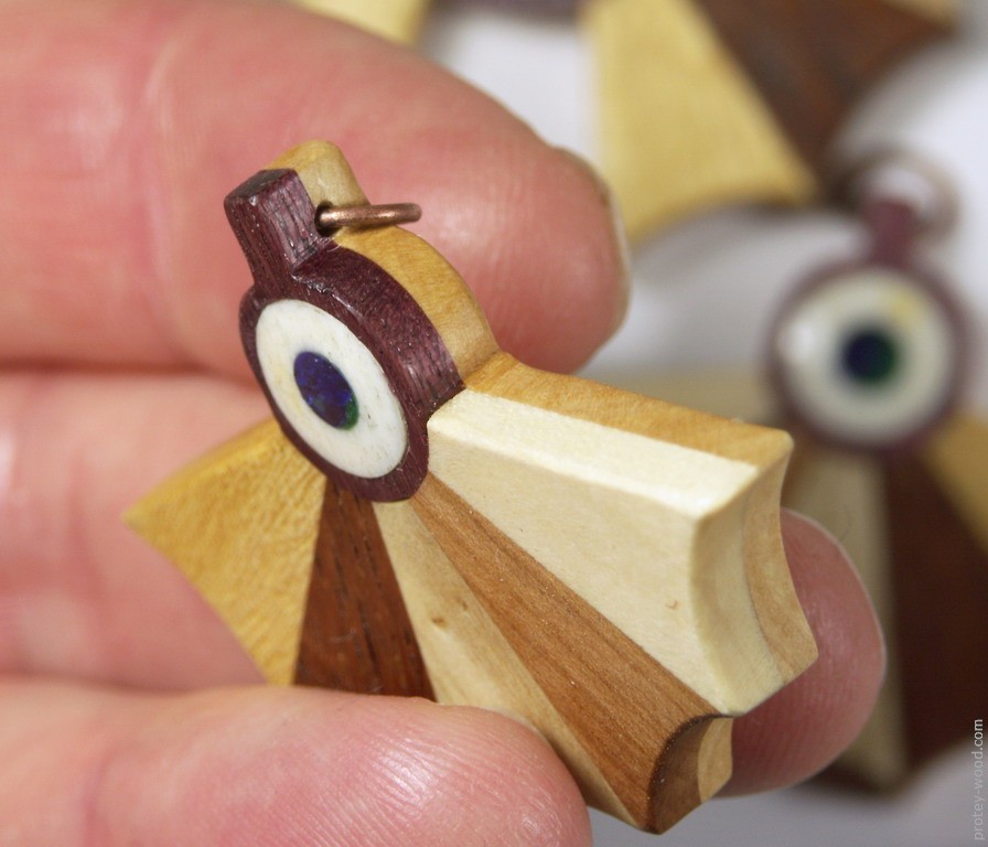 Покрытие дерева – тунговое масло. Тыльная сторона кулона дополнительно покрыта карнаубским воском. Инкрустированные камнями костяные вставки покрыты только карнаубским воском.
