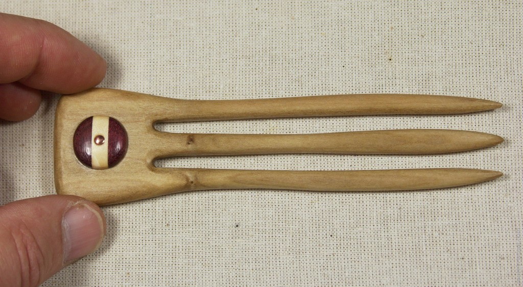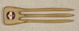 Клен Семенова. Декоративная накладка – амарант и клен. Вставка – латунь. Покрытие – тунговое масло. Размеры 118 х 33 х 5 мм. Длина зубьев 92 мм.