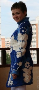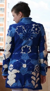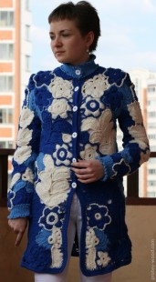 Пальто связано крючком в технике сцепного гипюрного кружева.