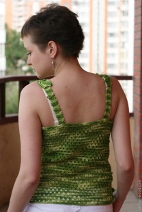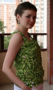 Топ связан крючком в технике сцепного гипюрного кружева.