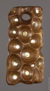 Песчаная акация (род Ammodendron). Инкрустация латунью. Покрытие – карнаубский воск. Размеры (высота х ширина х толщина): 52 х 25 х 9 мм.