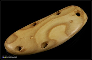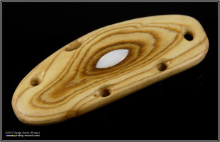 Основа – миндаль обыкновенный. Вставка – перламутр. Покрытие – карнаубский воск. Размеры (высота х ширина) – 66 х 28 мм. На тыльной стороне изделий выбито клеймо мастера – «D».