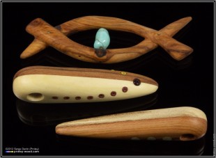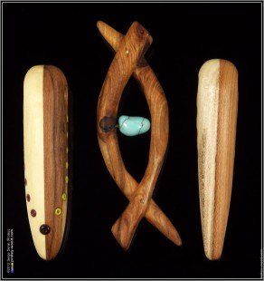 Левый кулон инкрустирован бисером; правый – древесиной клёна и абрикоса.