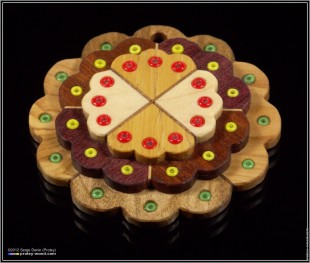 Секторный набор из древесины разных пород: клён серый и жимолость; махагони и амарант; ироко и клён белый. Прослойки из дубового шпона.