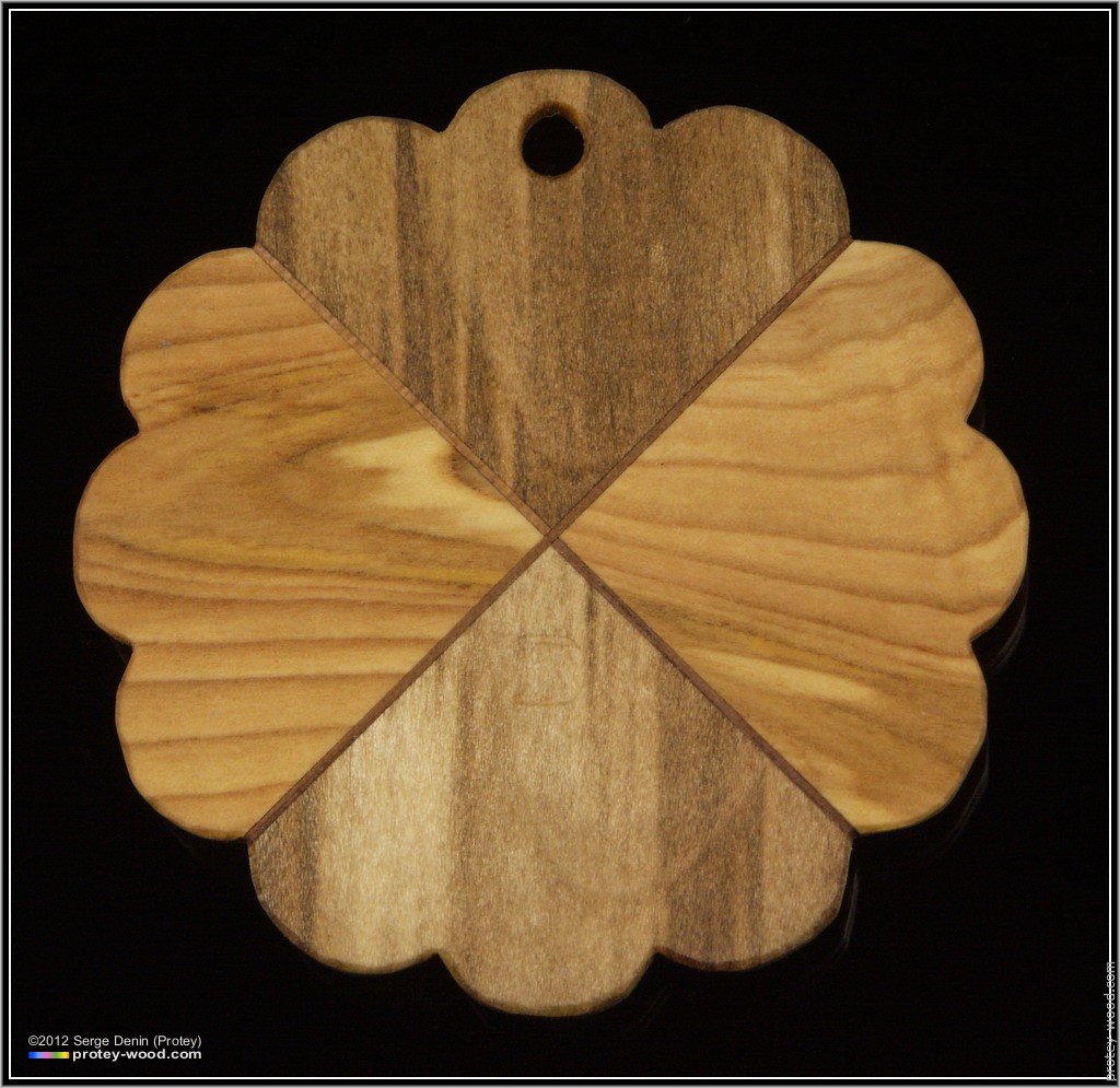 Секторный набор из древесины разных пород: клён серый и жимолость; махагони и амарант; ироко и клён белый. Прослойки из дубового шпона.
